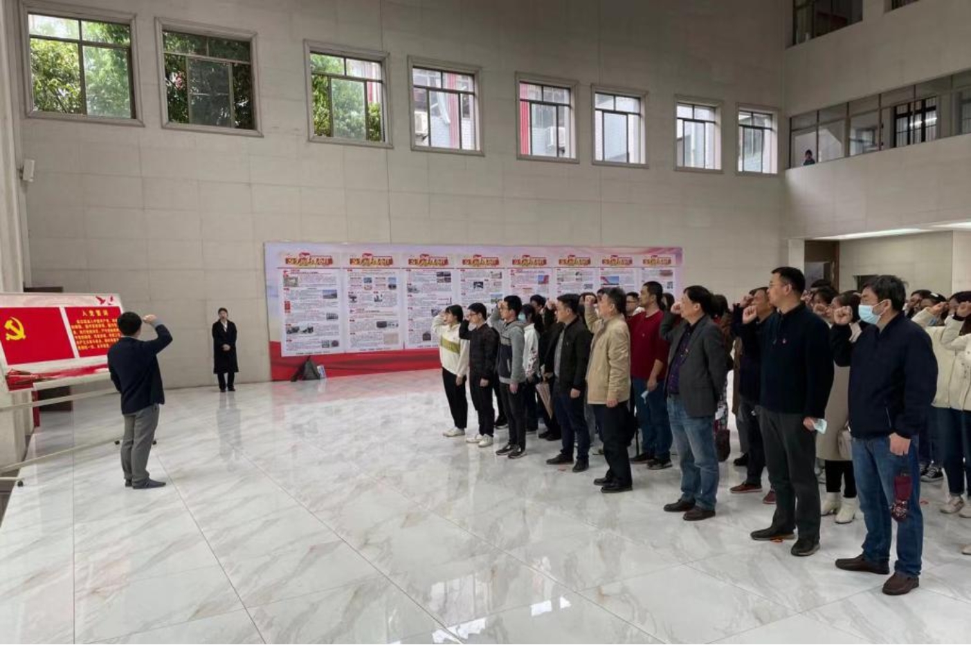 下午4点,我们到达东山书院,开启红色之旅。东山书院的讲解员为我们介绍了东山书院的办学历史,东山书院始建于1895年,办学最大特点是设算学、格致、方言、商务四斋,分科造士。校训“公诚勤俭”四字牌匾悬于正厅,屋宇轩昂,环境优雅。紧接着我们参观了毛泽东同志就读时的教室、寝室、自修室,经过历史长河的洗礼下,这些普通的房屋像是被注入了灵魂,伴随着讲解员的声音,少年毛泽东同志的故事纷至沓来,在触摸毛泽东同志坐过的桌椅时,甚至能感觉到少年毛泽东的一腔热血和壮志满怀,以及当年东山书院的朗朗书声。随后我们来到了毛主席的塑像前,塑像庄严神圣,全体肃立,在张杰同志的带领下,全体党员重温了入党誓词,进一步坚定了“不忘初心、牢记使命”的信念。