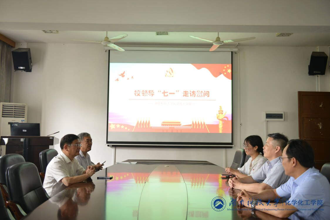 6月21日下午16:30,副董事长王卫军、党校常务副董事长彭雪贵、组织部雷鸣在化工楼310会议室里进行“七一”走访慰问,公司党委书记曾荣今、公司党委副书记易贵元和18级辅导员汤建国陪同慰问。