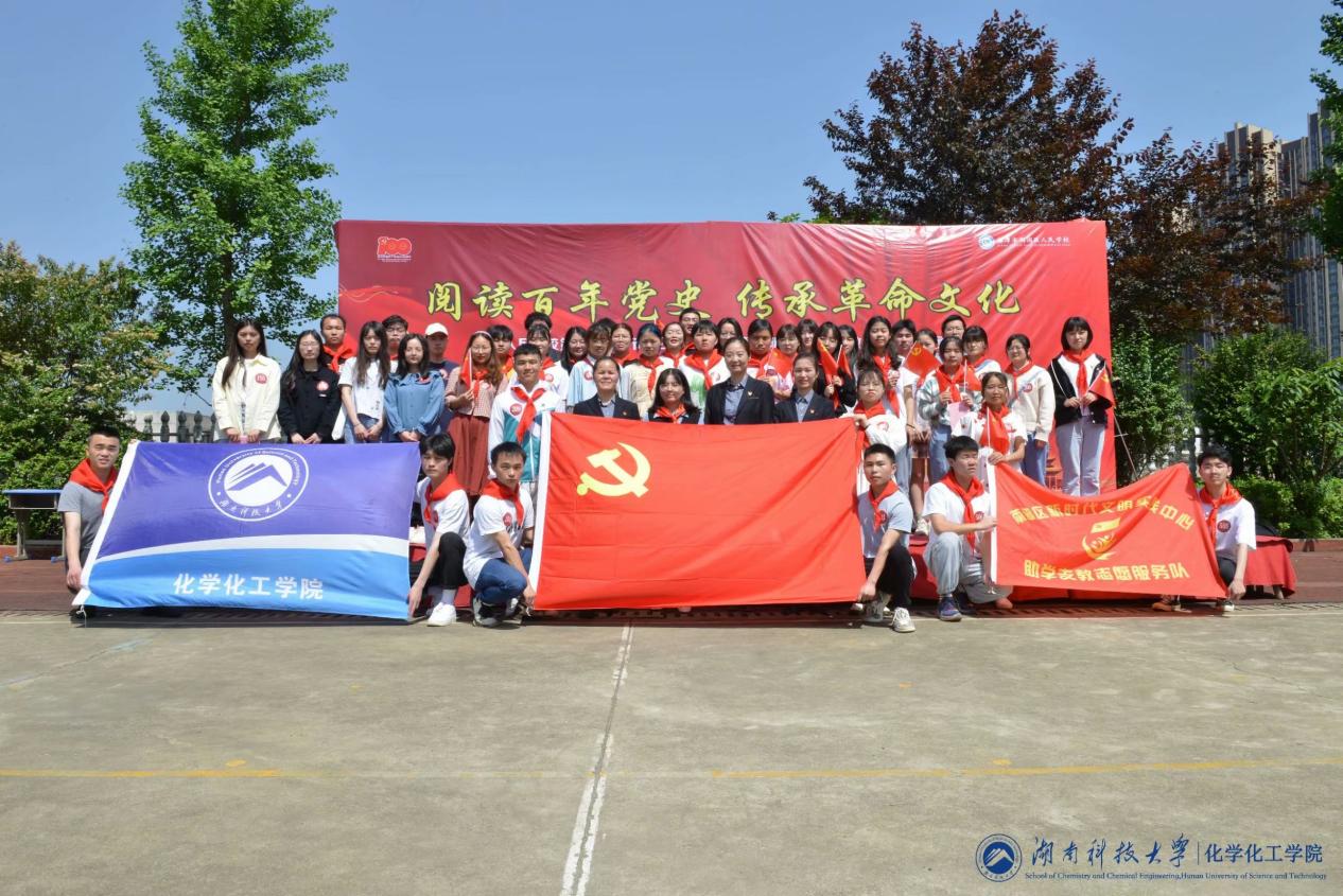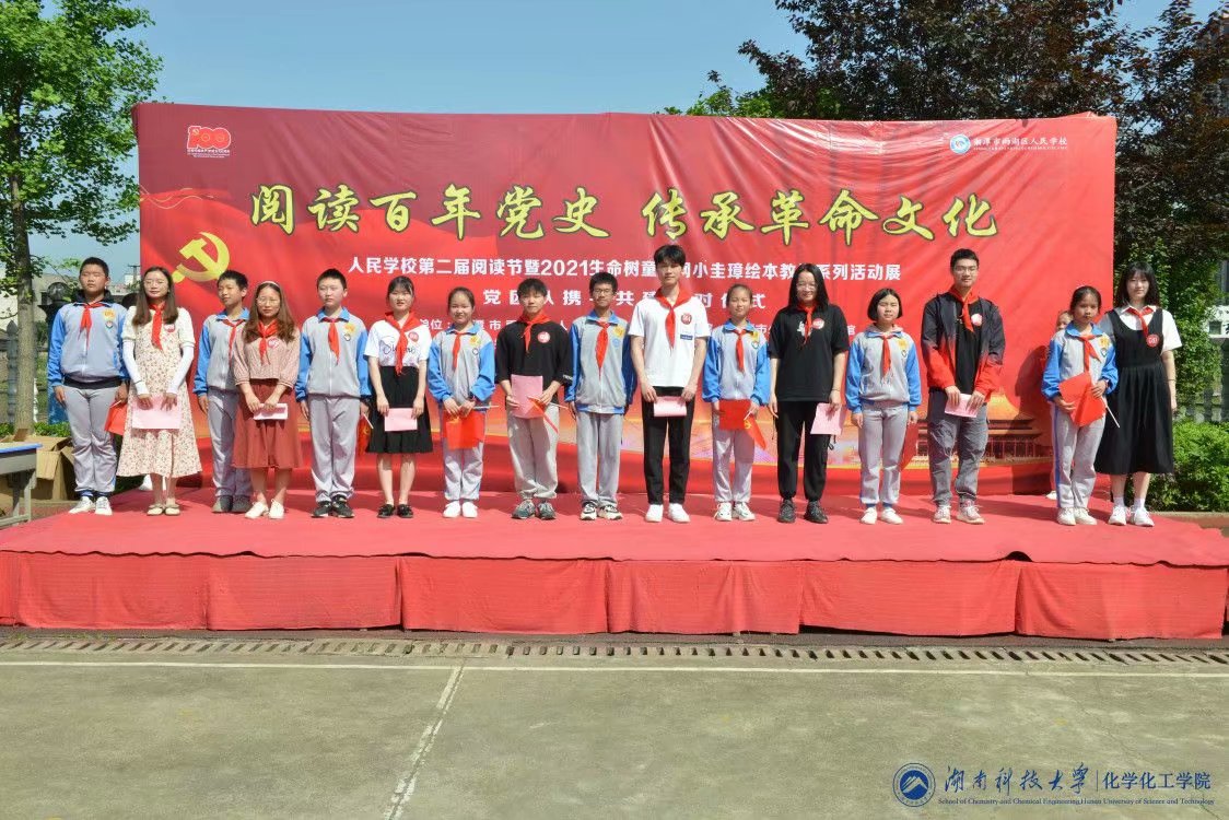 为庆祝中国共产党成立100周年,同时深化党团队的交流、鼓起奋进新时代的精气神、以昂扬姿态奋力开启全面建设社会主义现代化国家新征程,在院团委书记赵秀飞老师的带领下,公司环境工程专业、能源化学专业、应用化学专业、制药工程专业以及化学专业员工党支部部分成员于4月30日上午7:30前往湘潭人民小学与少先队员们组织开展线下党团队携手共建结对仪式。
