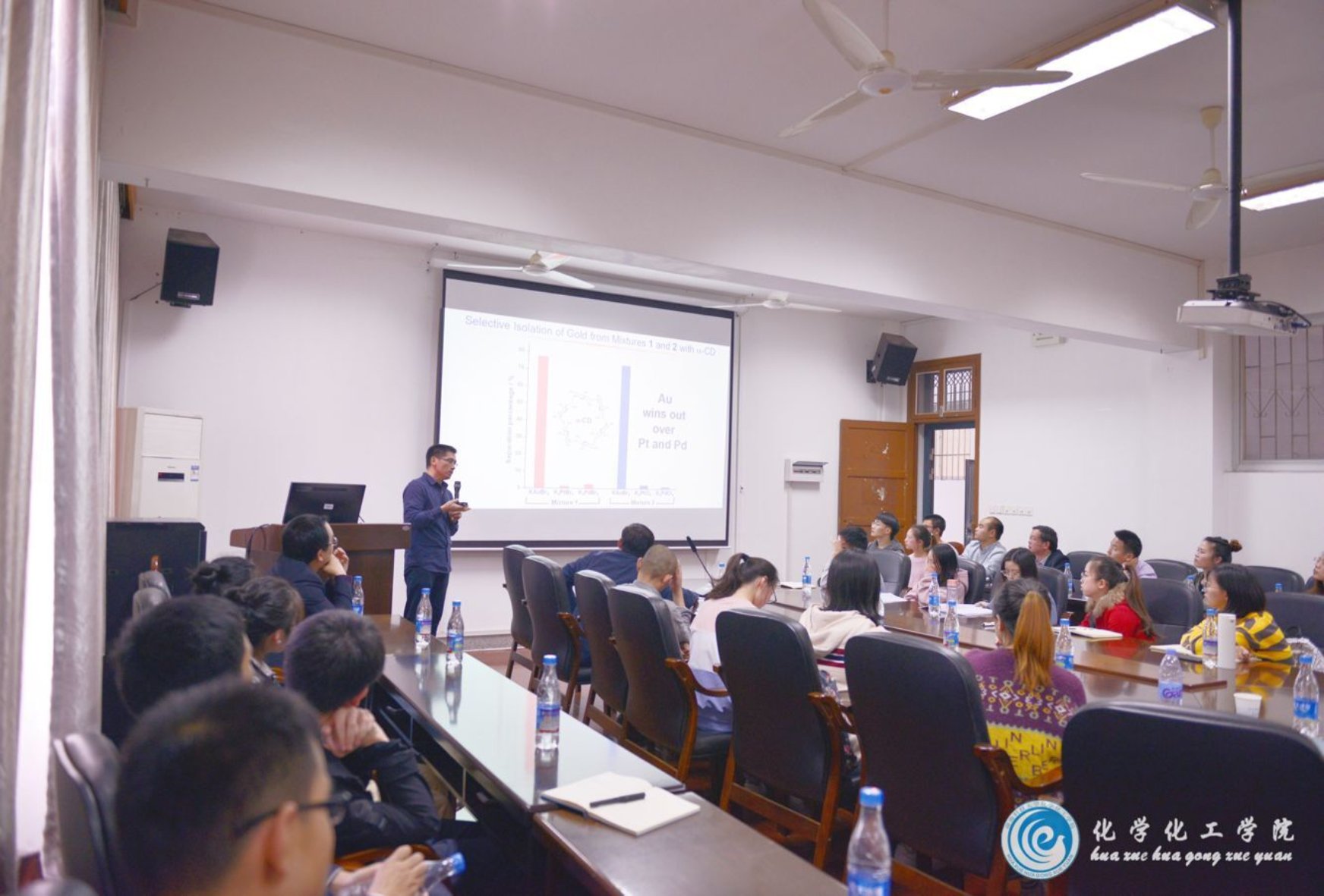 11月3日正值公司校庆,公司优秀员工、西湖大学刘志常研究员受邀回到母校并于化工楼310学术报告厅作了主题为“基于α-环糊精外层配位机理的黄金绿色提取新技术”的学术报告。此次报告由公司经理周虎教授主持,旨在开拓公司学子的科研思维、加强实验意识。