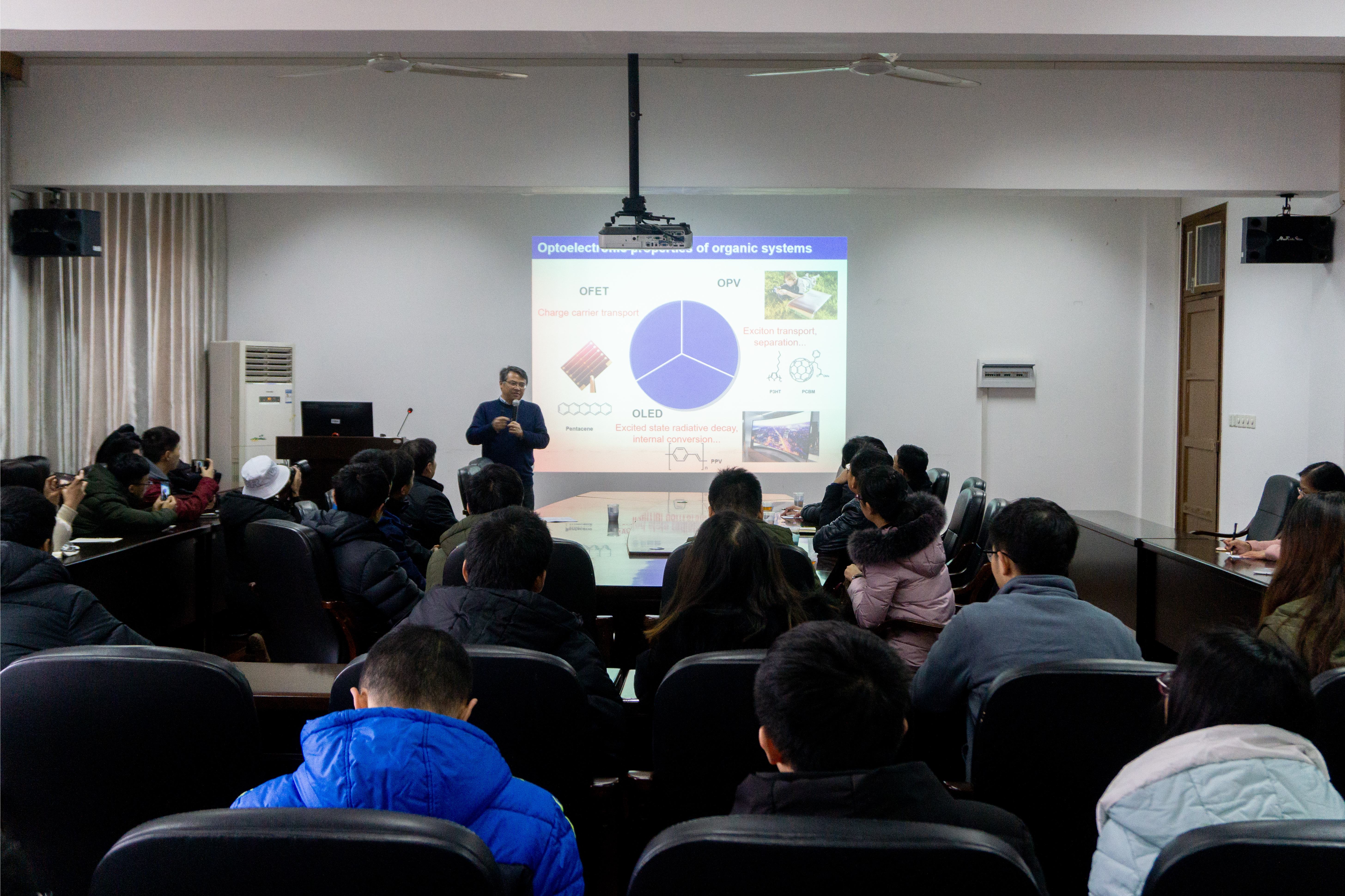 12月9日下午3点半,清华大学“长江学者特聘教授”帅志刚教授应邀来校,在公司化工楼三楼学术报告厅开展以“有机光电材料中的电子激发态与载流子输运理论研究”为主题的讲座。此次讲座由公司党委书记曾荣今教授主持,球盟会师生及理论有机化学与功能分子教育部重点实验室科研人员70余人到场聆听。