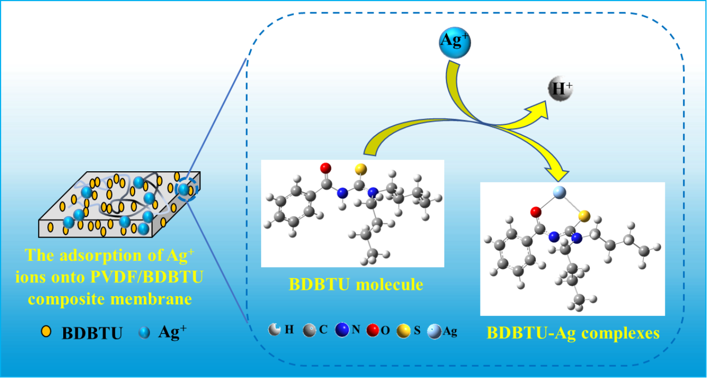 图2Ag+在PVDF/BDBTU复合膜上的吸附行为模型图。