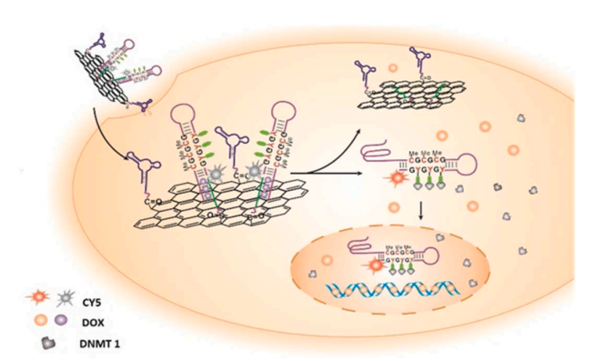 图(三):基于DNA组装氧化石墨烯的双响应肿瘤靶向荧光成像和协同治疗的原理示意图