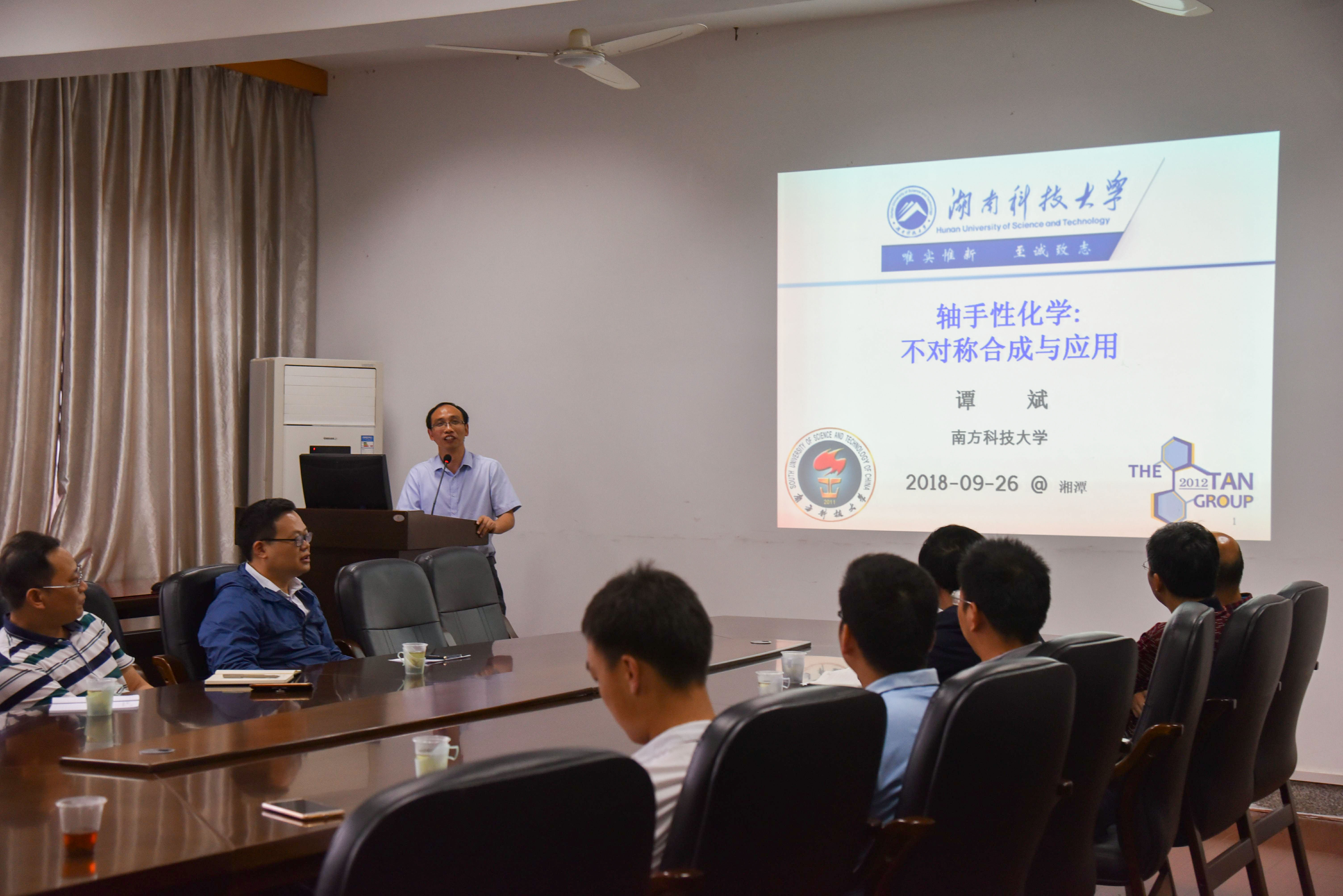 2018年9月26日下午,应球盟会和理论有机化学与功能分子教育部重点实验室的邀请,国家杰出青年基金获得者谭斌教授在化工楼三楼学术报告厅以“轴手性化学:不对称合成与应用”为主题,做了一场精彩的学术报告。球盟会师生、理论有机化学与功能分子教育部重点实验室科研人员等到场聆听。此次报告会由公司周虎书记主持。