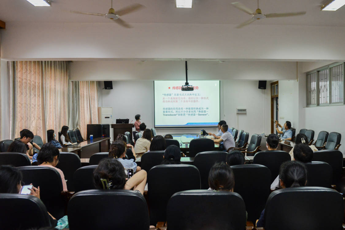 讲座中,何凤娇教授以传感器的发展趋势为切口引入所研究的压电传感器,从石英晶体的压电效应、压电石英晶振、三种压电传感器三个方面为大家详细讲解压电传感器的相关理论知识。她指出,压电式传感器是一种基于压电效应的传感器,也是一种自发电式和机电转换式传感器。它的敏感元件由压电材料制成,压电材料受力后从而在表面产生电荷。何凤娇教授还详细介绍了其所研究的基于质量响应的压电生物传感器、基于培养检测的非质量响应型压电微生物传感器、基于核酸检测的非质量响应型压电微生物传感器和基于培养检测的压电全自动血培养仪等项目。此外,何凤娇教授还娓娓道来了自己团队曲折但充实的研究经历,分享了自己团队的现有研究成果,进一步引导与会师生思考如何设计并开展高标准、高规范、有意义的科学研究。