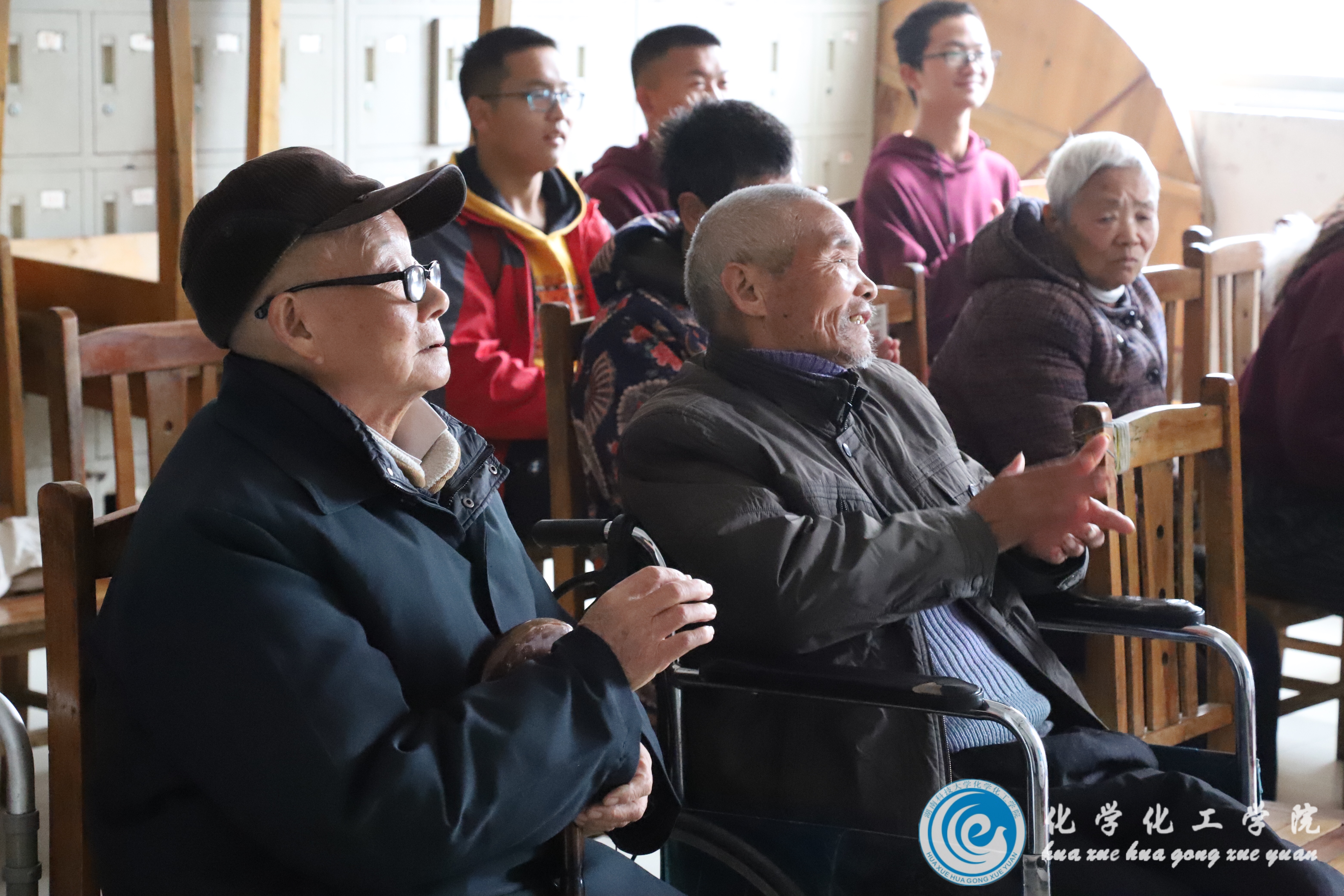 这一天上午,志愿者们提着事先准备好的水果零食及明信片,带着满满的爱心,踏上了前往先锋乡敬老院的道路。到达目的地后,大家走入老人们的房间送去温暖礼包并积极地投入到关爱老人的活动当中:有的与老人手拉手亲切慰问,有的帮老人打扫卫生,有的和老人谈天说地,认真地倾听着老人讲述过去的事。更是有花鼓戏与红歌信手捏来的唱歌小能手和老人们展开了一场对歌比赛。除此之外,志愿者们还带来了精心准备的舞蹈《Wakawaka》和诙谐的小品《70,80,90,00》等节目让欢声笑语充满了整个敬老院。老人童舜英说:“只有当孩子们来的时候,敬老院里才有着热闹的气氛,我们每个人都对孩子们的到来充满欢喜。”时间过得很快,在活动的最后,老人们亲切地与志愿团成员合影道别。