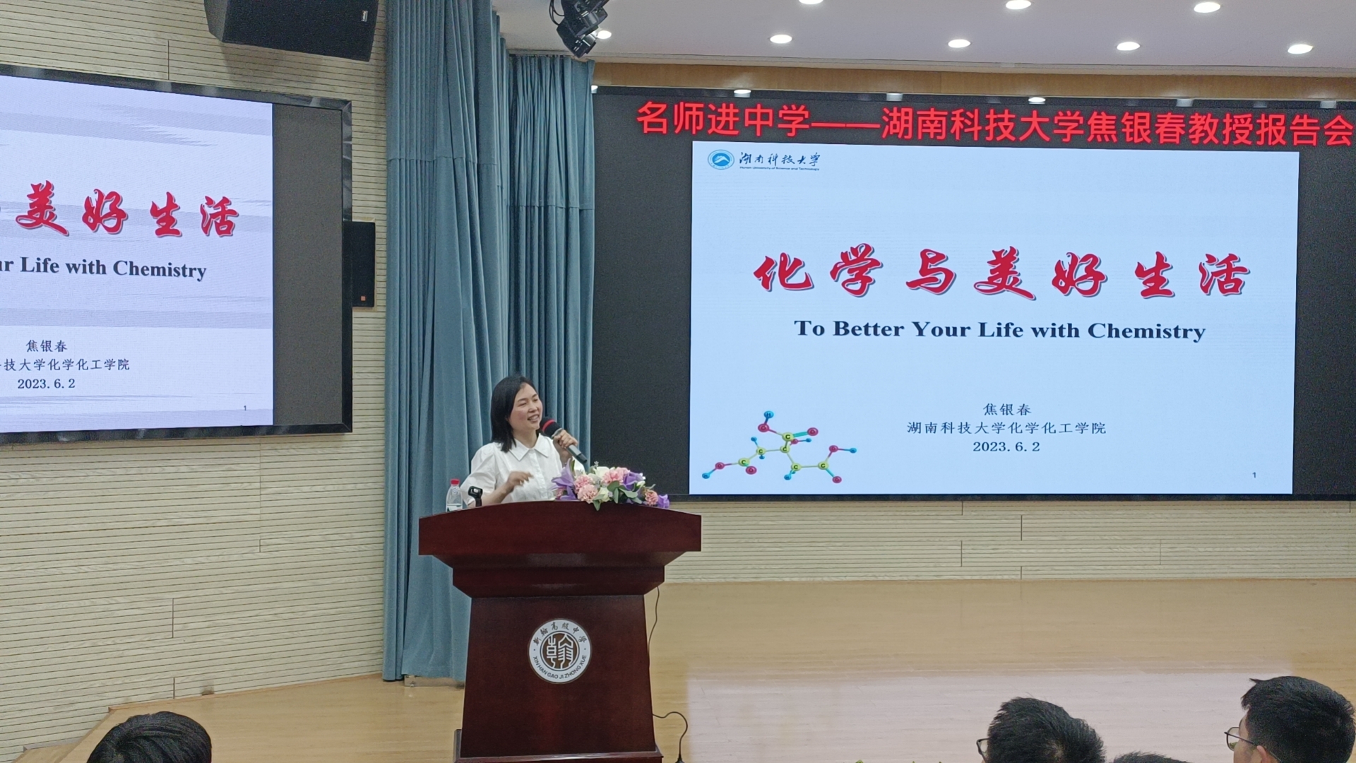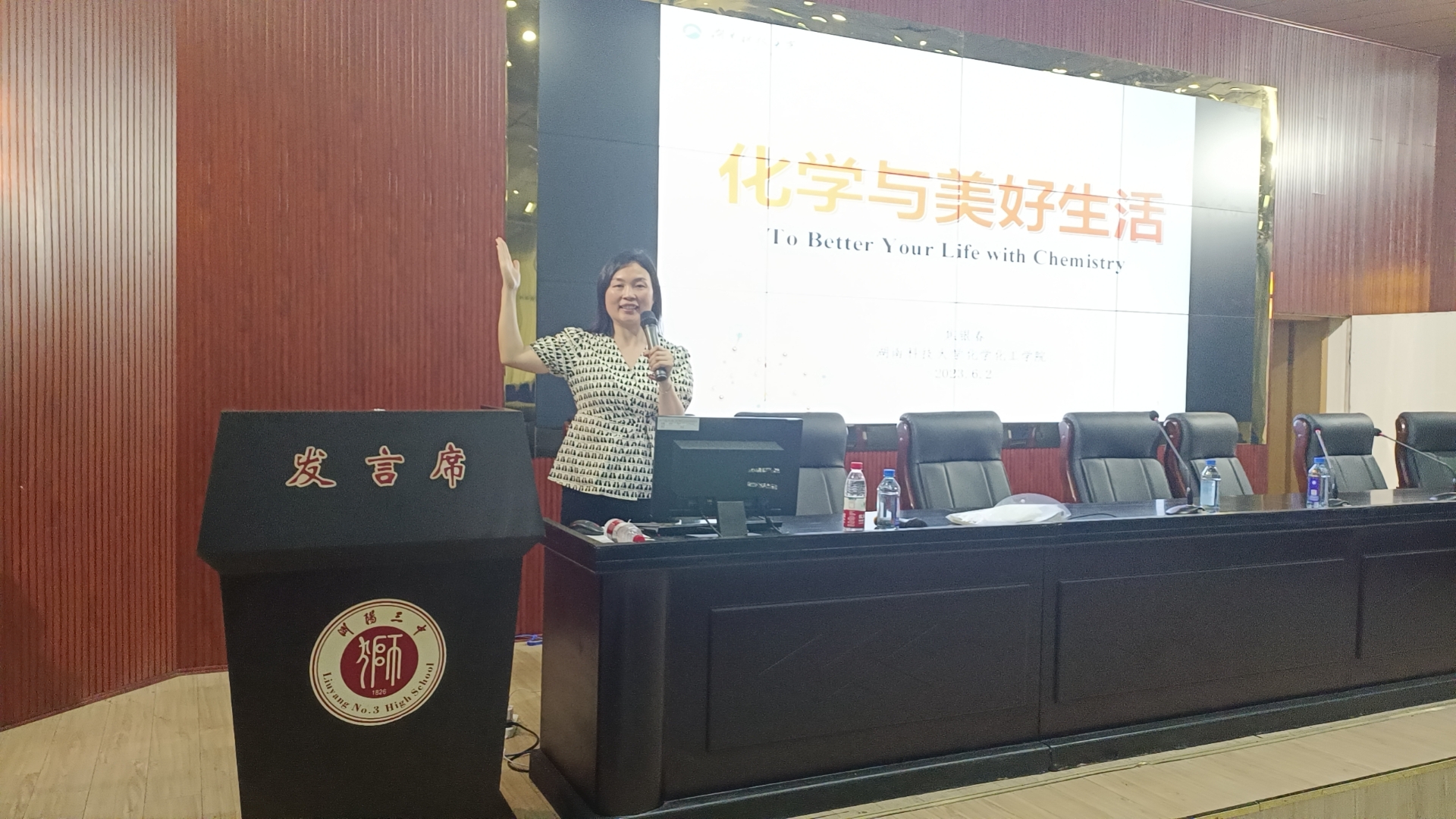 6月2日,为推进公司“名师进高中——协同构建双高育人共同体”招生宣传活动,球盟会焦银春老师分别在浏阳新翰高级中学和浏阳市三中开展了主题为“化学与美好生活”的两场科普讲座。讲座分别由浏阳新翰高级中学副董事长向明和公司党委书记周文革主持。