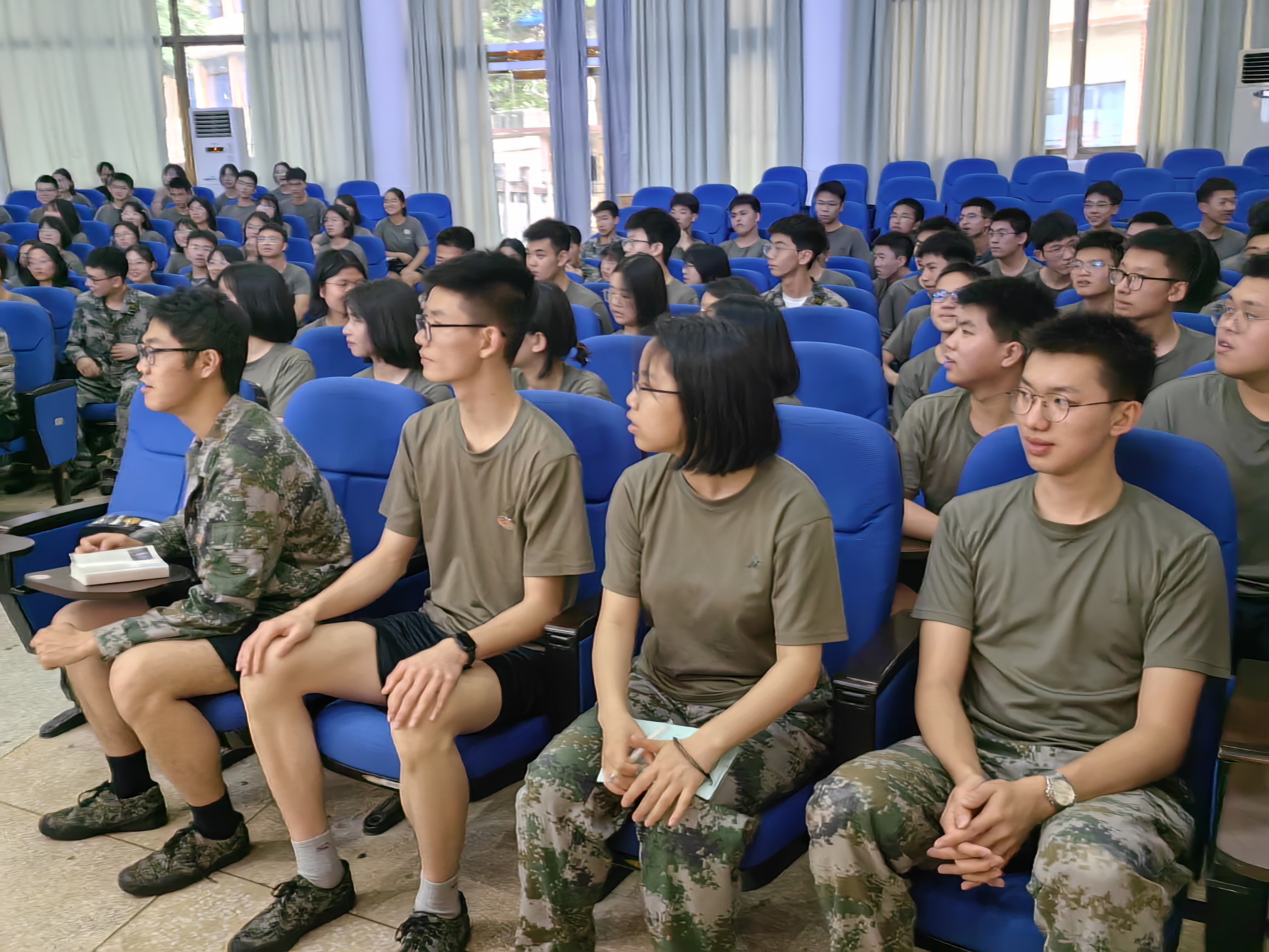 ▲ 浏阳市三中国防班同学们认真聆听科普讲座
