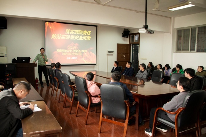 11月16日下午,球盟会、理论有机化学与功能分子教育部重点实验室联合举行消防安全培训及演习活动。国有资产与实验室管理处处长李宁、副处长郑海祥,保卫处王亮科长等领导莅临指导,湖南省普消消防安全宣传服务中心杨东升教官以及部分师生参加了此次活动,培训和演习活动由公司党委书记周文革主持。