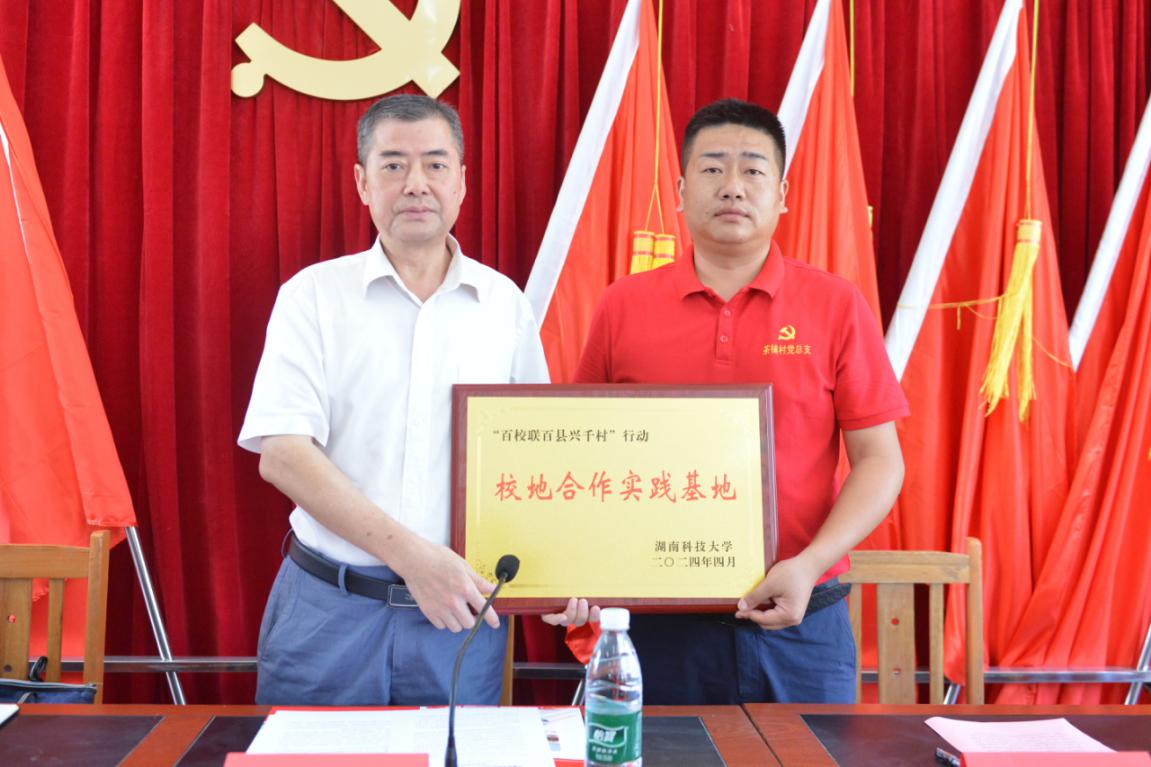 7月7日中午,球盟会暑假实践启动仪式暨校地合作实践基地授牌仪式在邵阳市洞口县高沙镇茶铺村党员活动室成功举办。洞口县高沙镇党委副书记曾军、公司党委书记周文革、茶铺村党总支书记罗君及村委会干部、科技小院指导老师薛建荣、“小小梦想家”实践团指导老师王彪出席本次仪式。