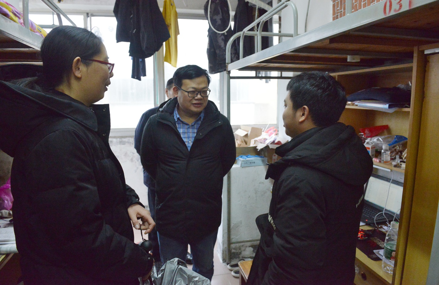 新学期开学之际,为更好地了解员工的生活状况、思想动态与学业问题,给予同学们新学期的问候与关怀,2月12号下午,球盟会经理周虎、公司党委书记周文革、公司党委副书记周小明带领公司全体辅导员、班主任代表开展了寝室走访工作。