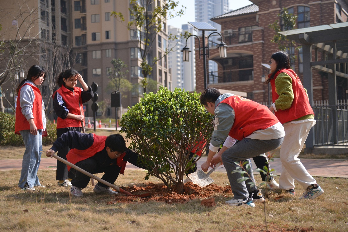吹面不寒杨柳风,阳春三月,志愿者们满怀热情地在金水湾社区为大地铺上新绿。志愿者们三四成组、分工明确,有的舞锹铲洞、扶立树苗,有的培土浇水、筑稳根基,各个环节有条不紊地顺利进行。众人齐心默契高,转眼间棵棵幼苗向阳挺立,为金水湾社区增添了几分春日的盎然生机。最后,大家引水悉心浇灌,期待来年绿树成荫、花香满园。