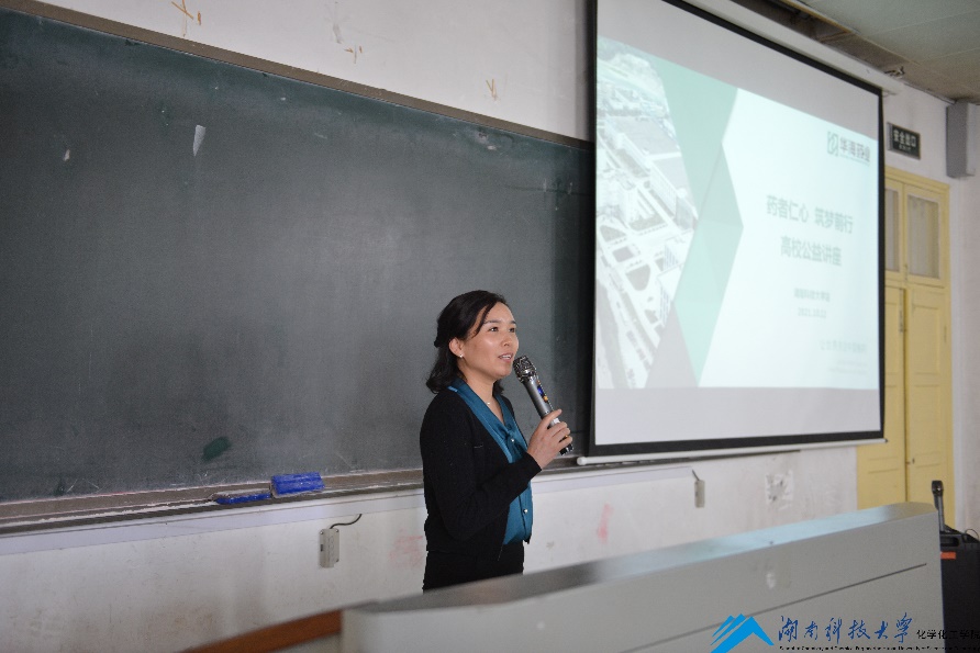 讲座伊始,朱艳员工从医学行业动态专题报告方面谈论行业前景和职业发展。其后,朱艳员工跟同学们一起分析了医药行业最新发展趋势和谈论到制药行业是如何看待制药人的。此外,她还分享了自己的个人成长经历以及求职的困惑和求职过程中的经验,她勉励同学们努力学习,付出终会有回报,华海药业公司也是同学们将来就业不错的选择。