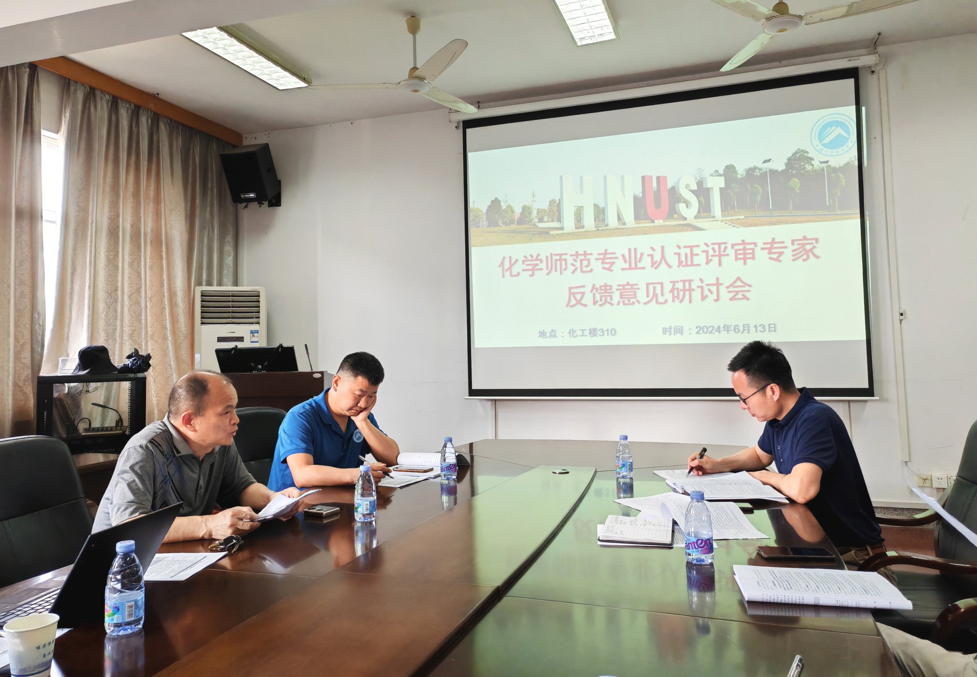 6月13日下午,球盟会在化工楼310会议室召开化学师范专业认证评审专家反馈意见研讨会。球盟会副经理汪靖伦主持会议,校教评中心周险峰主任、汤仁斌老师莅临,原副董事长曹晨忠教授受邀参会指导,化学系焦银春主任、化学专业负责人龙云飞教授、教务办、学工办和化学系相关骨干教师参会。