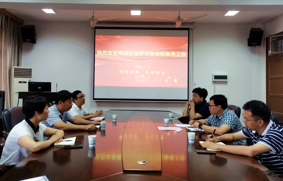 6月19日,湘潭市雨湖区委组织部副部长许俊奇,区委创新发展研究中心主任李海武,区科工信局赵美娇等人莅临公司调研,并就雨湖智库建设、科技创新、区域特色发展等方面进行深入交流。座谈会在化工楼310会议室举行,经理周虎、副经理郑柏树、陈述出席。