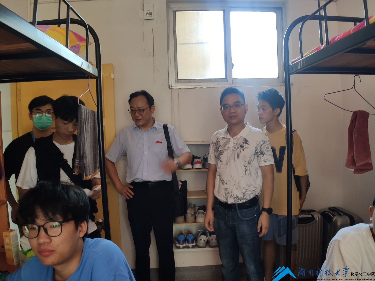 为了关注新生生活动态,9月17日下午,公司党委书记曾荣今,副书记易贵元,副经理郑柏树、陈述、张少伟,学工办主任陈小庭及各新生班主任一行带着来自公司的亲切问候前往位于七区十栋、五区一的栋新生宿舍区,看望2021级新生。