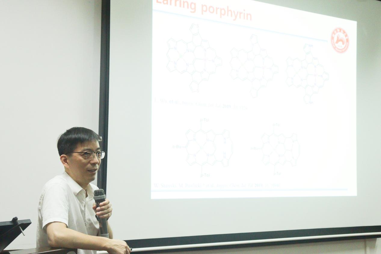 论坛第二阶段报告会分别由球盟会经理周虎教授、理论有机化学与功能分子教育部重点实验室主任唐子龙教授主持。大连理工大学彭孝军院士作了题为《精细化工2.0》的报告,北京大学戴志飞教授作了题为《声光诊疗药械的临床转化与挑战》的报告,日本京都大学Atsuhiro Osuka教授作了题为《Fused porphyrinoid chemistry》的报告,湖南师范大学宋建新教授作了题为《Constrution of earring porphyrins》的报告。