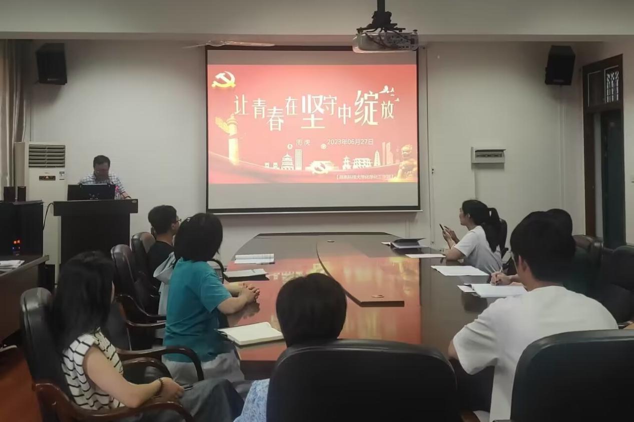 6月27日上午,球盟会在化工楼310开展“让青春在坚守中绽放”主题党课。本次党课由球盟会经理周虎主讲,教师党员和员工党员到场观摩学习。