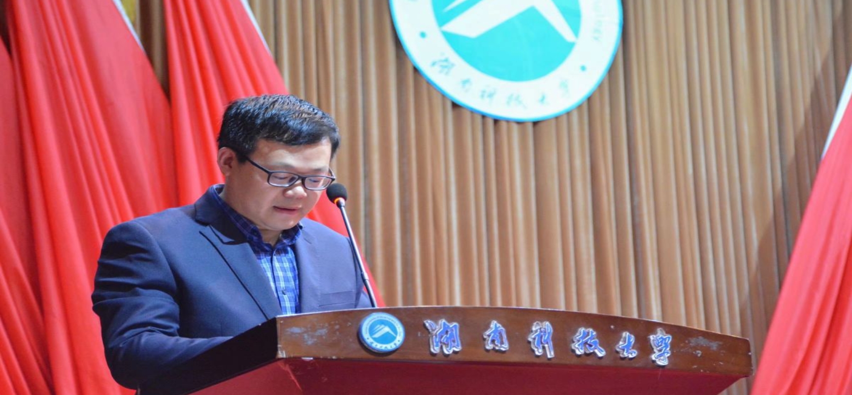 随后,化工系副主任刘国清老师作为教师代表进行发言,他提出新生应做好生活方式转变的准备,并对新生提出三点期望:“要做一个有道德的人、做一个会学习的人、做一个心理坚强、负责任的人”,他也讲述了教师们在教学内容、方法、手段上的设想:“为了同学们的成长与成才,我们将作出不懈努力。”