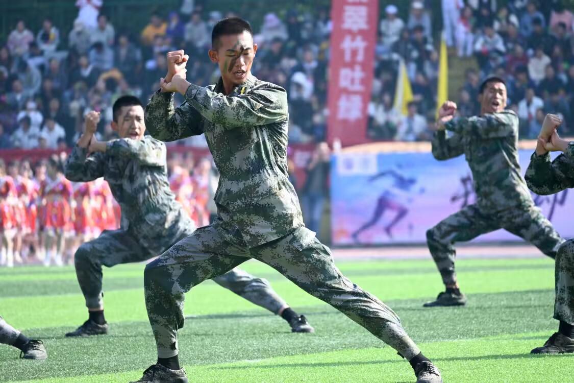 教职工旗袍队的表演,军训团和龙狮表演以及精彩的民族舞蹈成为开幕式上一道道靓丽的风景线,赢得了在场观众的阵阵掌声和喝彩声。